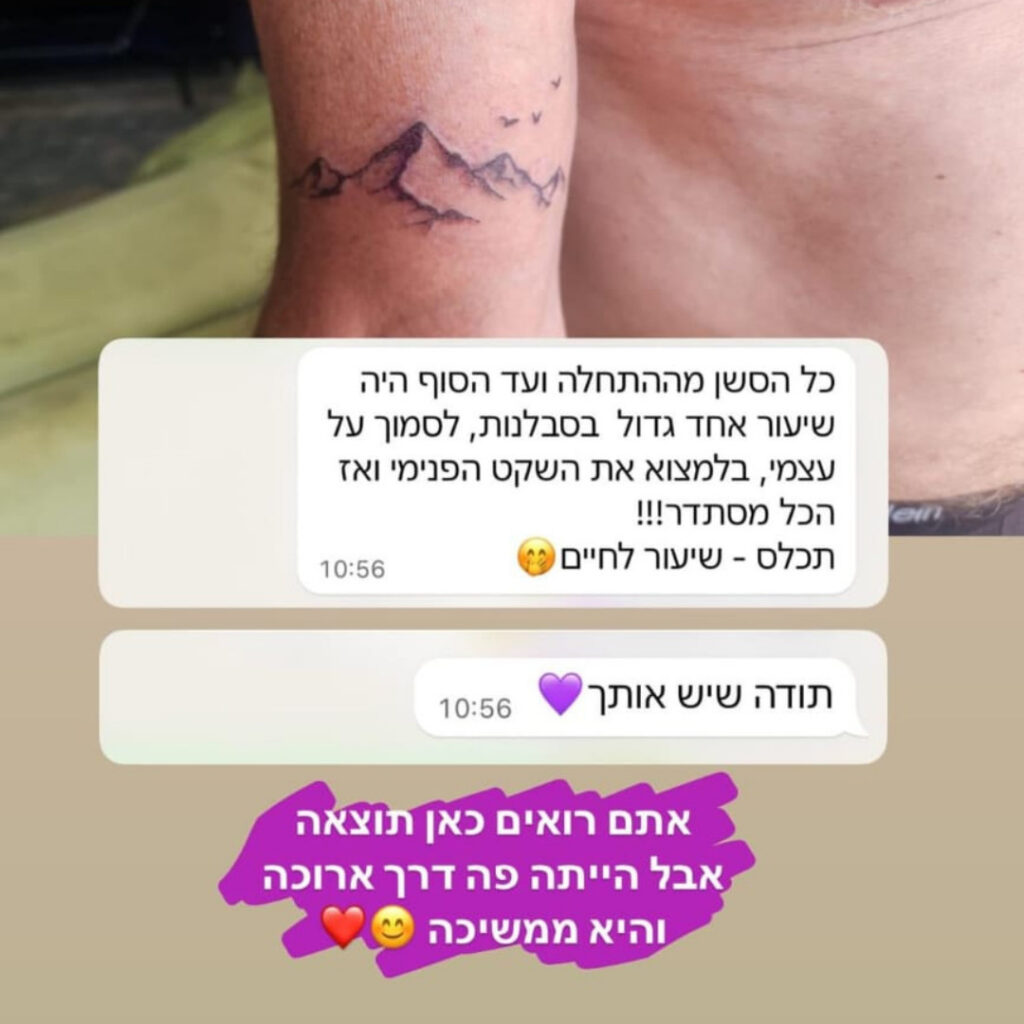 "החלק המשמעותי ביותר עבורי מעבר לטכניקה ולשיטה המיוחדת, זה הליווי האישי של ליאור והמעטפת לאורך ההכשרה - כבר למדתי לקעקע בעבר אבל התמיכה, הכלים העסקיים, הרגשיים זה משהו שאין למצוא בשום מקום אחר."